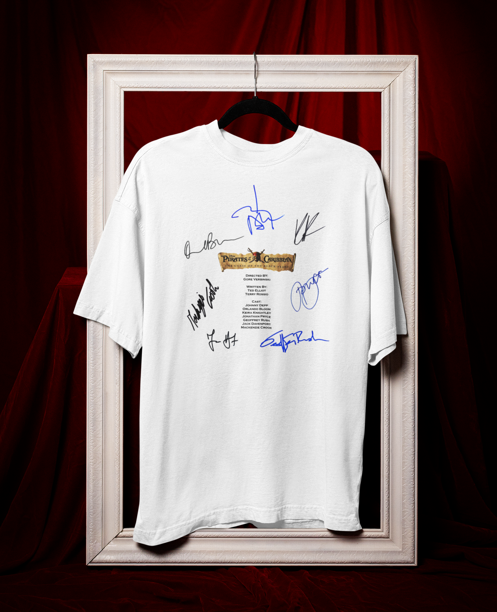 PIRATES OF THE CARIBBEAN, Iconic Signature T, Awesome Gift, Personal Memorabilia, T Shirt, Gift, Present, Christmas, Valentines, TV, Film, Cinema, Hollywood.